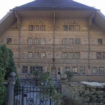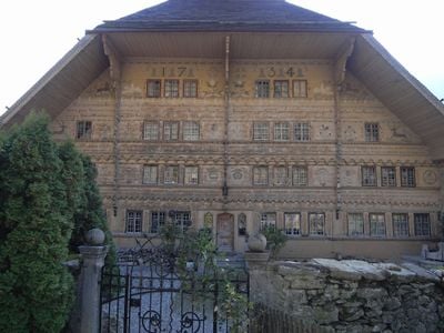 The building features intricate wooden construction techniques and decorative elements that represent the finest example of traditional Swiss chalet architecture.