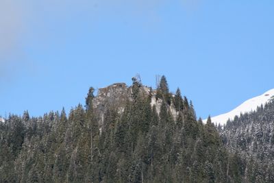 The remains of Burg Belmont stand on a rocky peak with steep cliffs to the north and east at 1,240 meters above sea level.