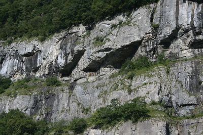 The Fort du Scex stands on a cliff face, featuring galleries with artillery positions, observation posts, and accommodation spaces for military personnel.