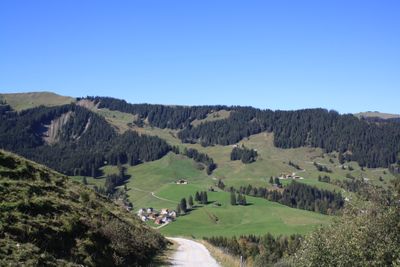 The Schwyberg mountain reaches an elevation of 1645 meters and features multiple hiking paths along its ridge stretching through the Swiss landscape.
