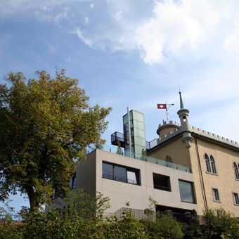 Sälischlössli stands on a hilltop with traditional Swiss architectural elements, displaying regional construction techniques through its stone and wooden components.