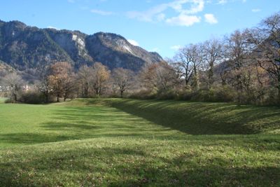The Rohanschanze is a historical fort in Malans with partially preserved earth ramparts still visible today. The remains show elevated walls on the northern side that provide a sense of the structure's original scale and design.