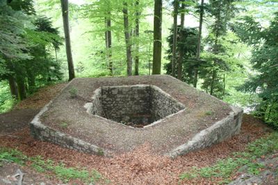 Castle Oberes Baliken is a medieval castle ruin located on a round hill in Wald. The stone remains sit on a rise roughly 30 meters across, positioned at 650 meters elevation.