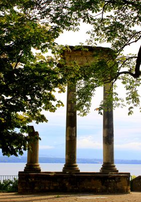 Noviodunum is a Roman settlement beneath modern-day Nyon on Lake Geneva. The remains include a forum, basilica, thermal baths, and the foundations of an amphitheater.