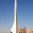 Dreiländereck is a metal pylon standing near the Rhine River in Basel, with three curved arms pointing toward France, Germany, and Switzerland. The structure consists of thin rolled sheet metal supported by a central tube that forms the core of the monument.