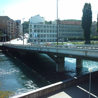 This concrete structure stands as the last bridge within Geneva city limits and the sixth bridge upstream from Lake Geneva on the Rhône River.
