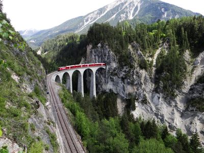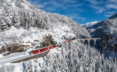 Visitors can experience the viaduct while traveling on the Albula Railway line between Tiefencastel and Filisur, with regular train services throughout the day.