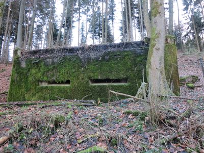 Festung Uetliberg is a military fortification stretching several kilometers along a ridge between different locations and featuring concrete shelters and artillery positions. The complex follows the natural slope of the terrain and offers views down into the valley below.