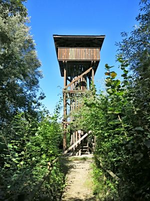 Observation tower Häftli, nature observation tower in Büren an der Aare in the canton of Bern, Switzerland
