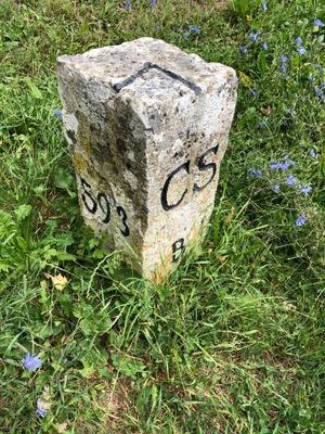 The limestone marker, numbered 593, contains specific engravings identifying Epfenhofen on the north face and Bargen on the south face, despite its name meaning Black Stone.