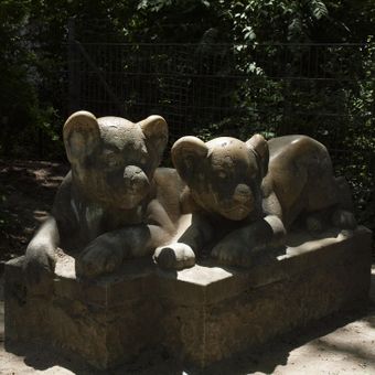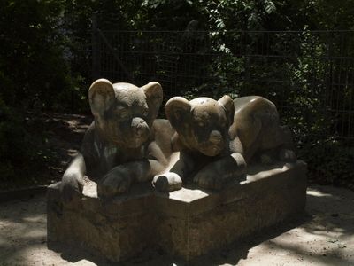 Zwei Löwen, sculpture by Arnold Huggler at Grünanlage Landenberg in Zürich, Switzerland