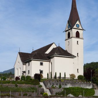 St. Jacob Catholic Church with Ossuary Chapel, church building in Ennetmoos in the canton of Nidwalden, Switzerland