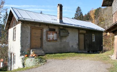Historical workshop by Giger Brothers, plough smithy, factory and museum building in Schnaus in the canton of Graubünden, Switzerland