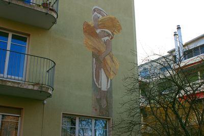 Ear pickers, mural painting on a apartment building in the city of Bern, Switzerland
