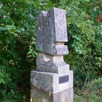 Head, stone sculpture in Zollikofen in the canton of Bern, Switzerland