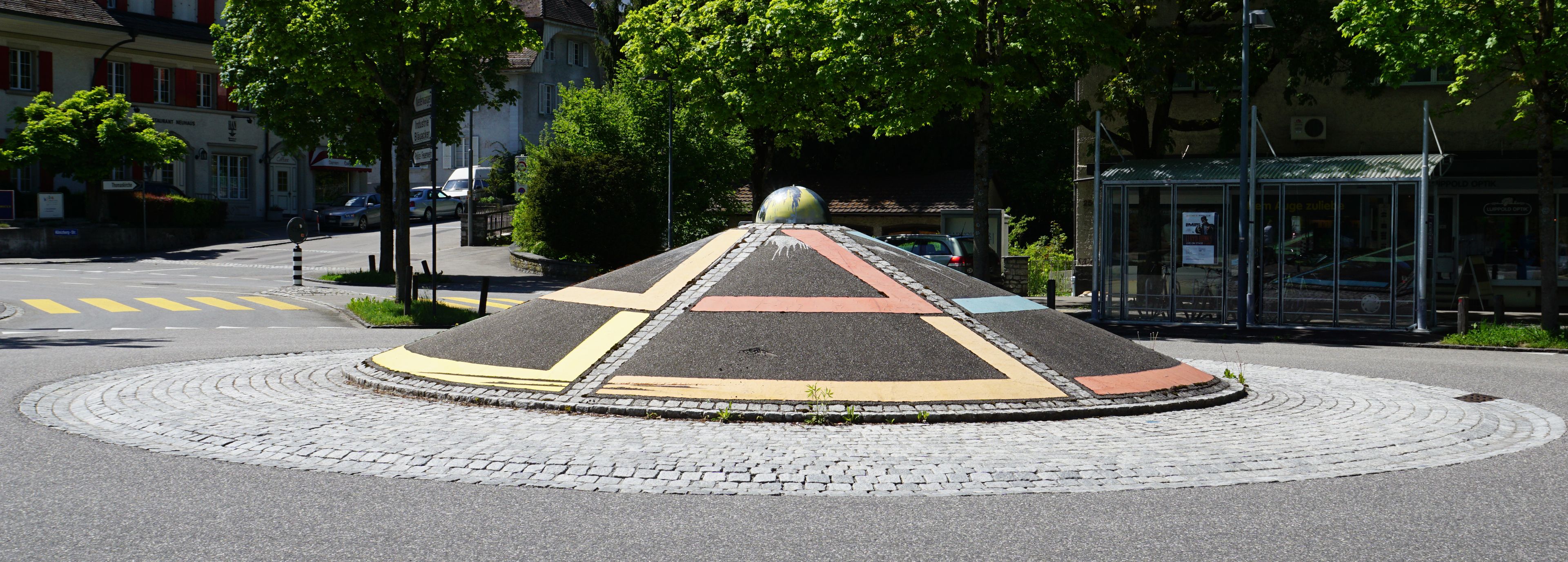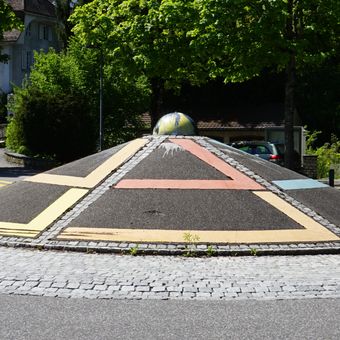 Windrose, stone asphalt cone with inlaid colored angle elements in Köniz in the canton of Bern, Switzerland