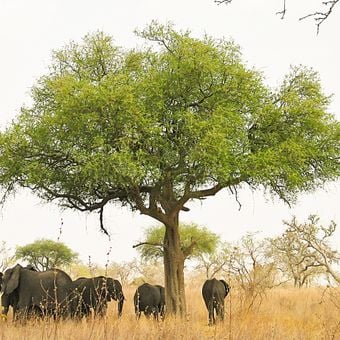 The park contains sixteen forest clearings called bais and maintains one of the densest populations of African forest elephants, approximately 2.5 per 100 square kilometers.