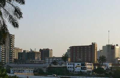 Douala extends along the southeastern shore of the Wouri River estuary, with industrial zones, residential districts, and a deepwater port handling maritime trade.