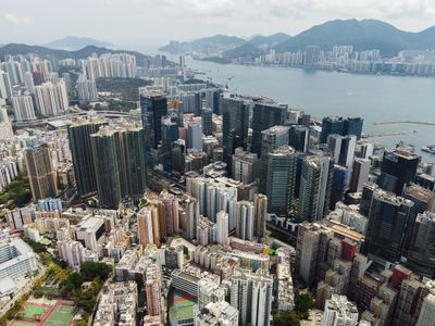 The district covers 11 square kilometers of dense urban development, featuring commercial buildings, residential complexes, and industrial facilities along Victoria Harbor.