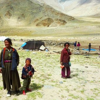The Changpa nomads migrate seasonally through the plateau with their herds, maintaining traditional livestock farming practices in this remote high-altitude environment.