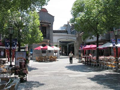 Xintiandi combines traditional shikumen houses with modern establishments, forming a pedestrian area with stone-gate architecture and commercial venues.
