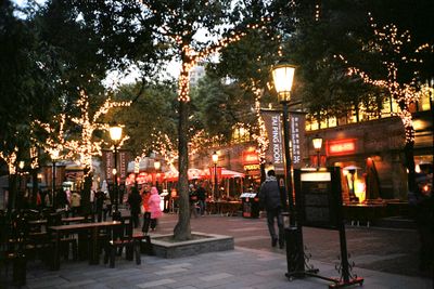 The district features restored mid-19th century stone-gate houses transformed into galleries, bookstores, cafes, and international restaurants.