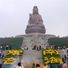 The 62-meter-tall white marble statue stands on a 15-meter pedestal, creating a total height of 77 meters on Mount Xiqiao.