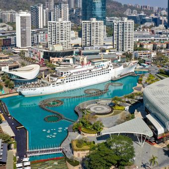 The Sea World station connects to both Line 2 and Line 12 of the Shenzhen Metro, providing direct access to the complex and nearby ferry terminal.