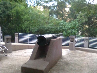 The Kowloon West II Battery features military architecture with earthwork fortifications and gun emplacements within the green surroundings of Kowloon Park.