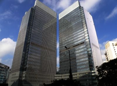 The site is easily reached by public transportation with multiple entry points from street level. Inside, restaurants and shops occupy the lower floors while clearly marked corridors help visitors navigate between towers and office areas.