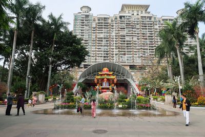 The park contains sculptures depicting Chinese legends and urban scenes that integrate traditional Chinese craftsmanship with regional Lingnan artistic styles.