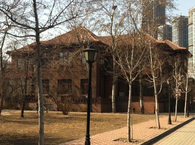 The building incorporates specific construction techniques using blue bricks and wooden materials that adapt to the regional climate conditions of Tianjin.