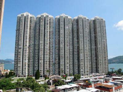 The residential complex, constructed between 1986 and 1988, stands on the former site of the Kowloon Silk Factory in Deep Bay.