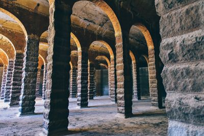 The reservoir contains internal stone pillars and red brick archways supporting the tank ceiling, demonstrating early 20th-century construction techniques.