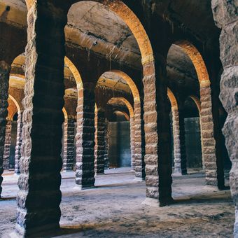 The circular water tank features 100 stone columns and brick arches, with 22 columns inside the tank and 78 visible from the exterior.