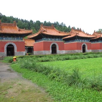Yongling Mausoleum is an imperial burial site in Liaoning that spreads across a large area surrounded by red-painted walls. The complex consists of a main courtyard, fortified structures, and graves arranged between Qiyun Mountain and Yancong Mountain.