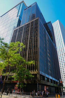 St George's Building rises 23 floors at Ice House Street, featuring aluminum curtain walls and a bronze exterior in the financial district of Central Hong Kong.