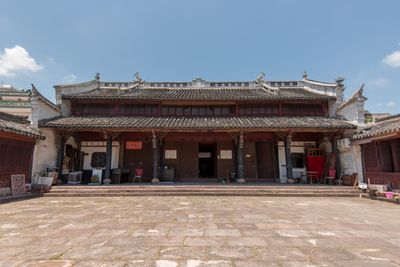 The temple features traditional Chinese architectural elements with carefully carved decorations, symbolic motifs, and multiple altars dedicated to different deities throughout its grounds.