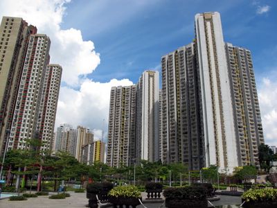 The estate, constructed between 1987 and 1989 on reclaimed land, transformed 5,617 rental units into resident-owned properties through the 1998 Tenants Purchase Scheme.