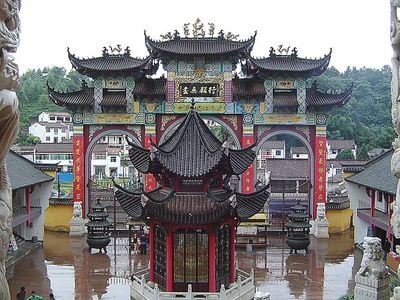 In 794, Silla prince Kim Gyo-gak died in a cave on Mount Jiuhua, and his preserved body led to the construction of this shrine.