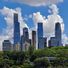 A 2,000 square meter business sky-park on the building offers outdoor areas and green spaces that contrast with the urban surroundings. Vertical aluminum fins along the facade reduce solar heat absorption while creating a distinctive visual effect.