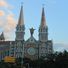 The church features architectural elements inspired by Gothic design, including a prominent statue of Jesus positioned at its summit with extended arms.