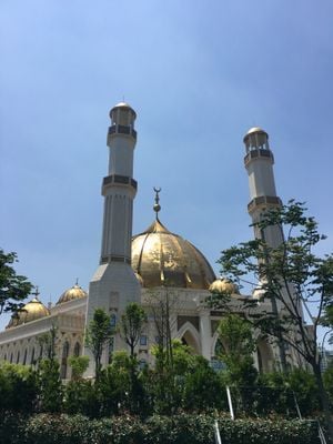 The mosque represents one of China's largest Islamic centers, completed in 2016 with modern design elements that follow traditional Islamic architectural principles.