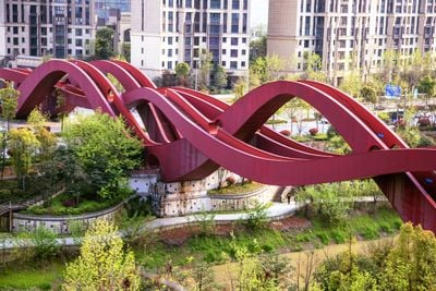 The bridge design incorporates elements from Chinese knotting traditions and mathematical concepts of the Möbius strip into its structural form.