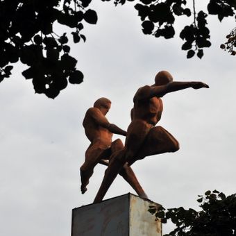 Pomník Vladimíra Štika, Josefa Hejla a Aloise Jelínka pod stadionem Evžena Rosického na Strahově