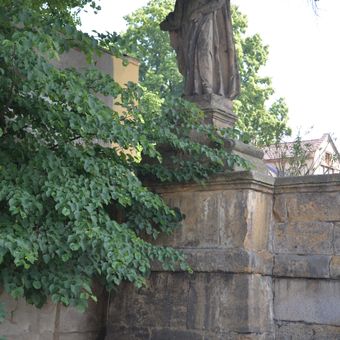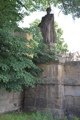 Socha svatého Josefa na zdi zahrady zámku v Liběšicích
