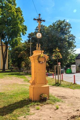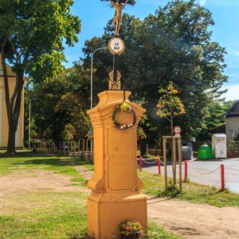 Kříž, kříž u kostela ve Skřivanech u Nového Bydžova
