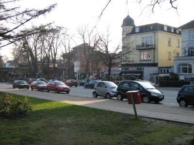 Groß Flottbek is a residential area in Hamburg's Altona district featuring brick houses and villas set among English-style gardens and mature trees. The neighborhood is structured around quiet streets that link residential blocks, local shops, and green spaces in an unhurried pattern.
