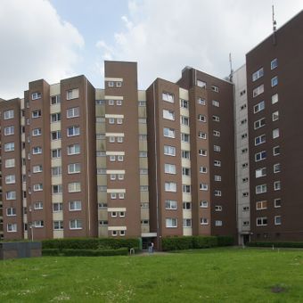 Steilshoop is a residential district in northeast Hamburg featuring apartment buildings and green spaces arranged across the area. The neighborhood borders the Ohlsdorf Cemetery and contains schools, shops, and local services for daily life.