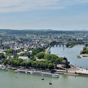 The train station connects the city to other destinations along the Rhine and Moselle, while ferries and bridges link both riverbanks. A cable car runs from the waterfront up to the fortress, offering wide views over the rivers along the way.